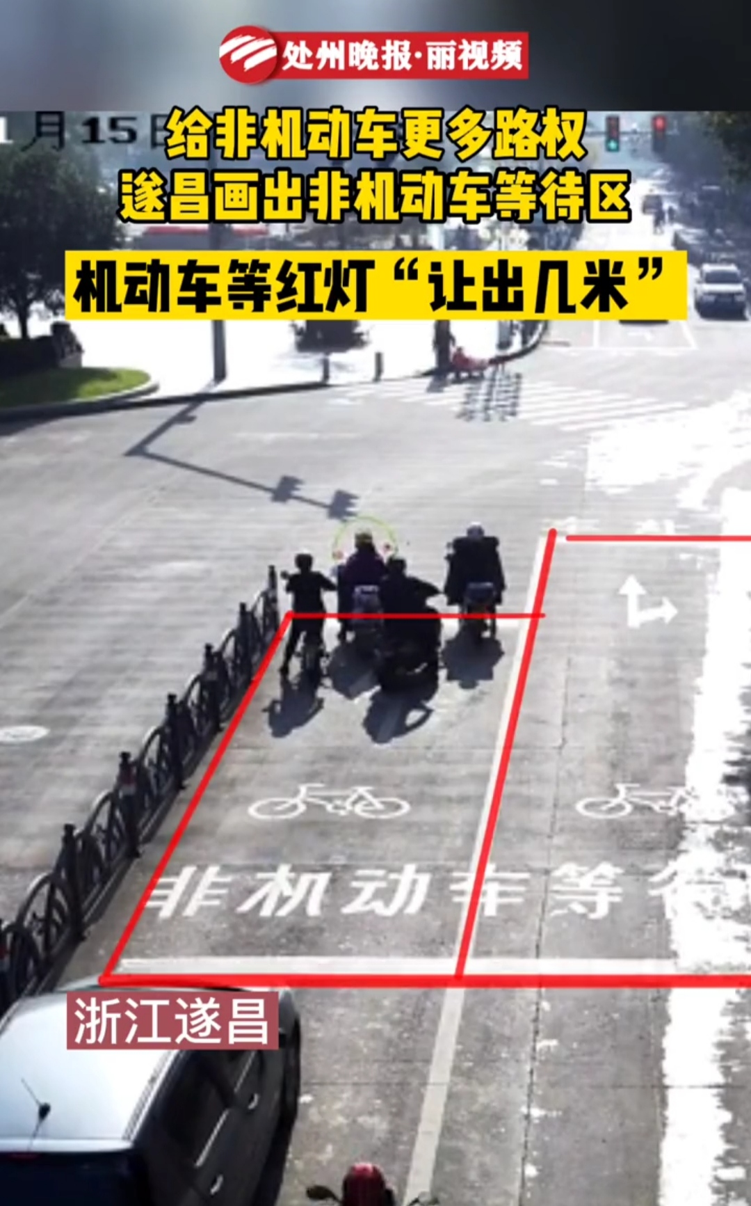 近期看到遂昌在未设置非机动车道的路口处画了非机动车等待区,感觉比较实用安全,希望龙泉相关部门可以跟进。龙泉那些没有条件设置非机动车道的道路都可以参考这个。有非机动车道的道路交管部门应该加强力度查处电瓶车违法行为。还有在信号灯的设置上也应该人性化点,尽量把左转和直行分开,能够很好解决龙泉交通的问题!