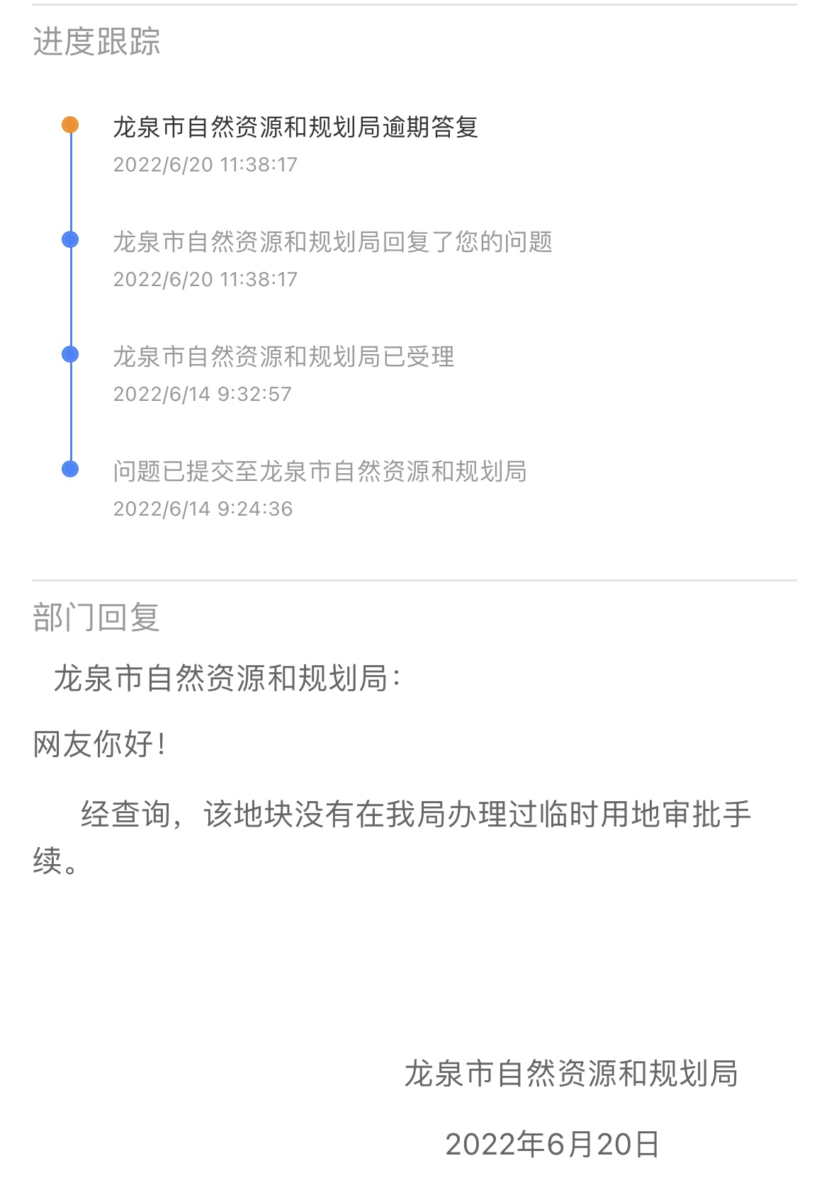 龙泉市自然资源和规划局 回复