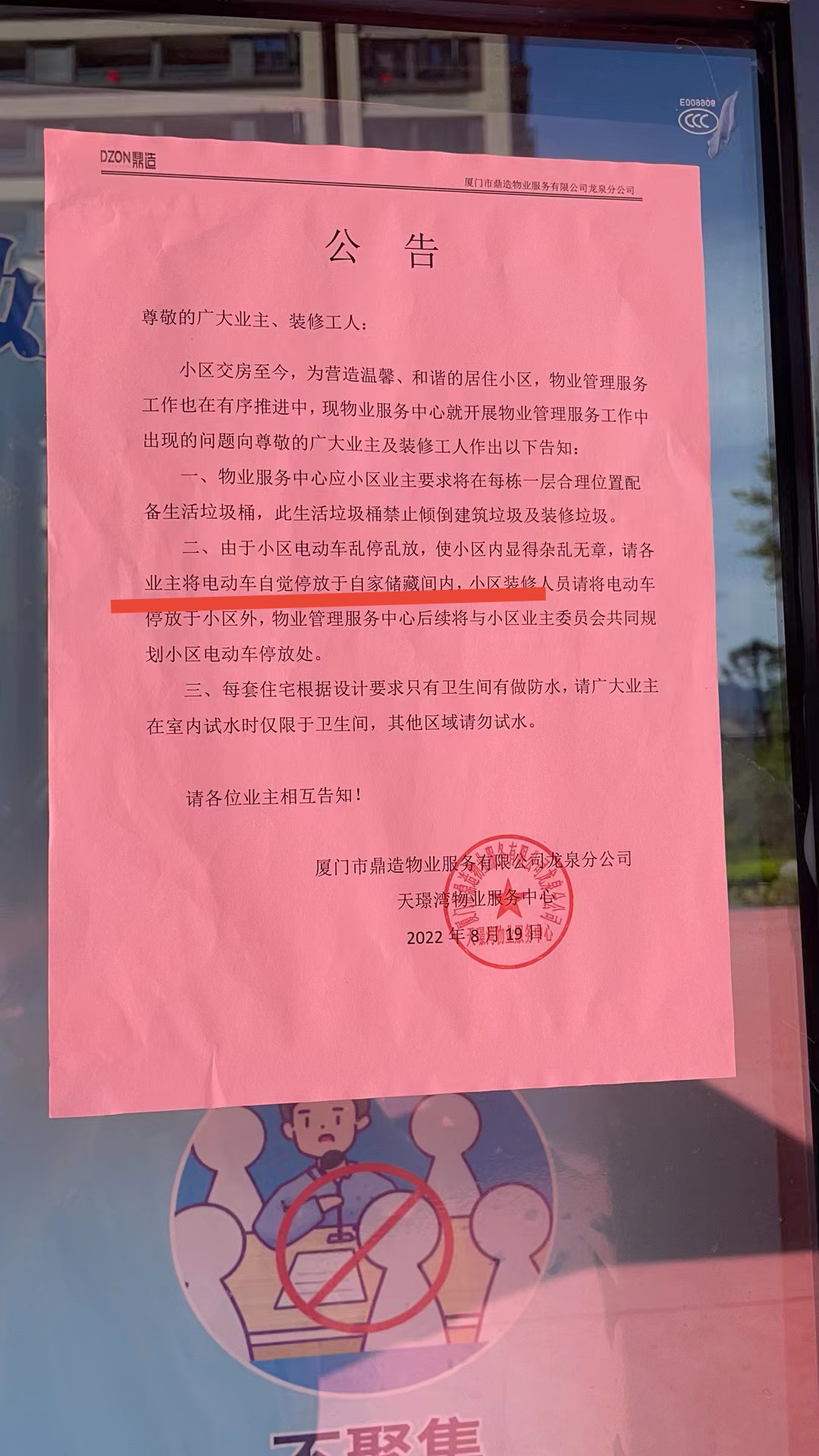 你好,鼎丰天璟湾物业出示公告,要求业主将电瓶车停至自家柴间是否违法。原先地下室电瓶车车位设置很少并没有设置充电装置。