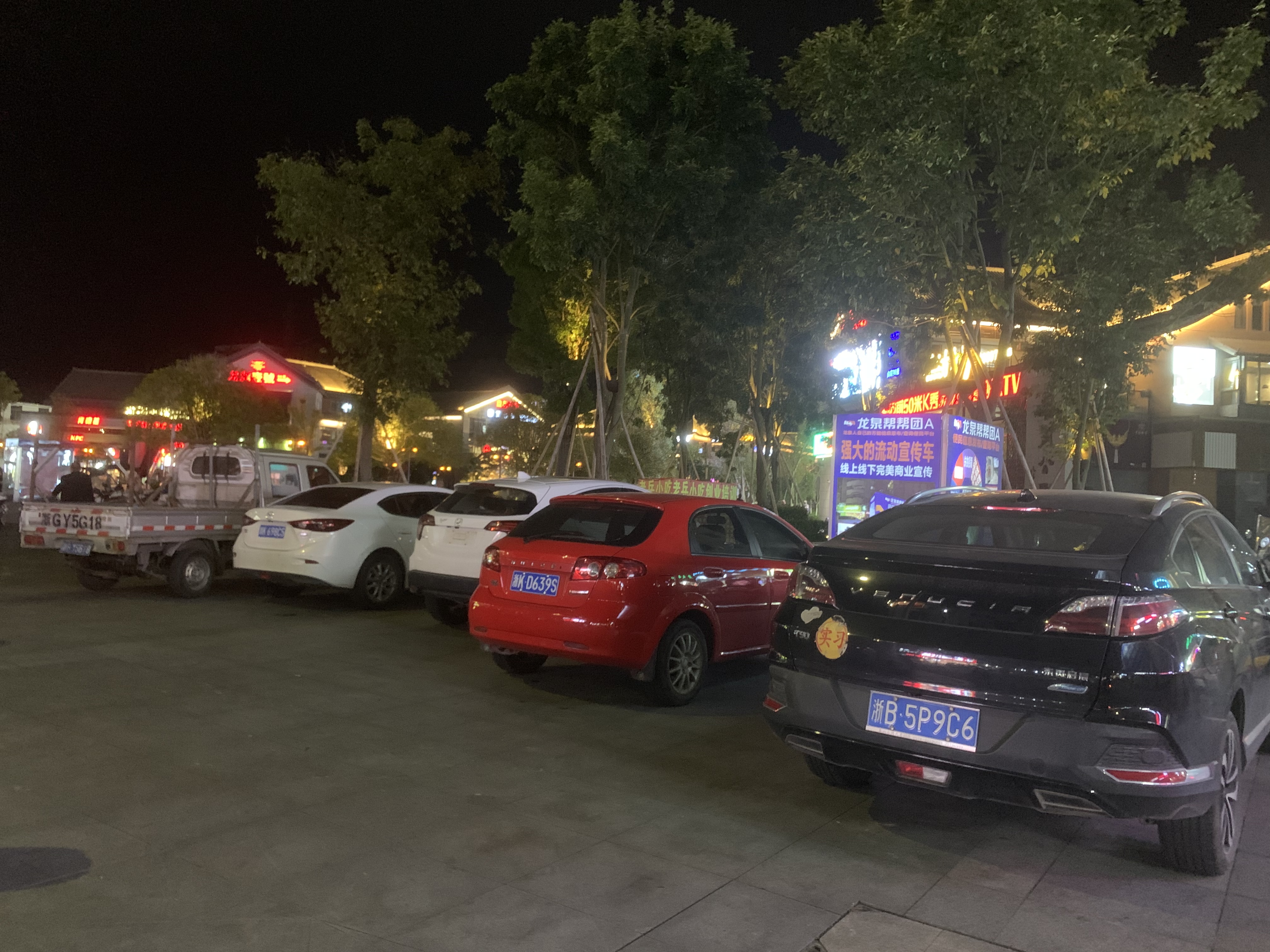晚上新天地广场停电动车的地方停着很多汽车,算不算人行道违停?有没有安全隐患?(这次附上照片给你们判定一下)