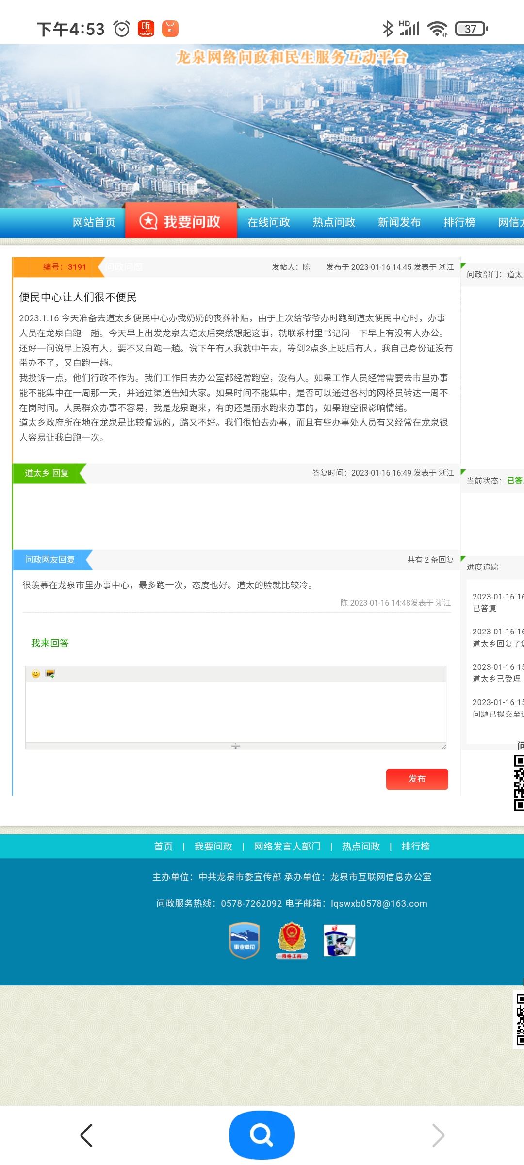 问政网友回复