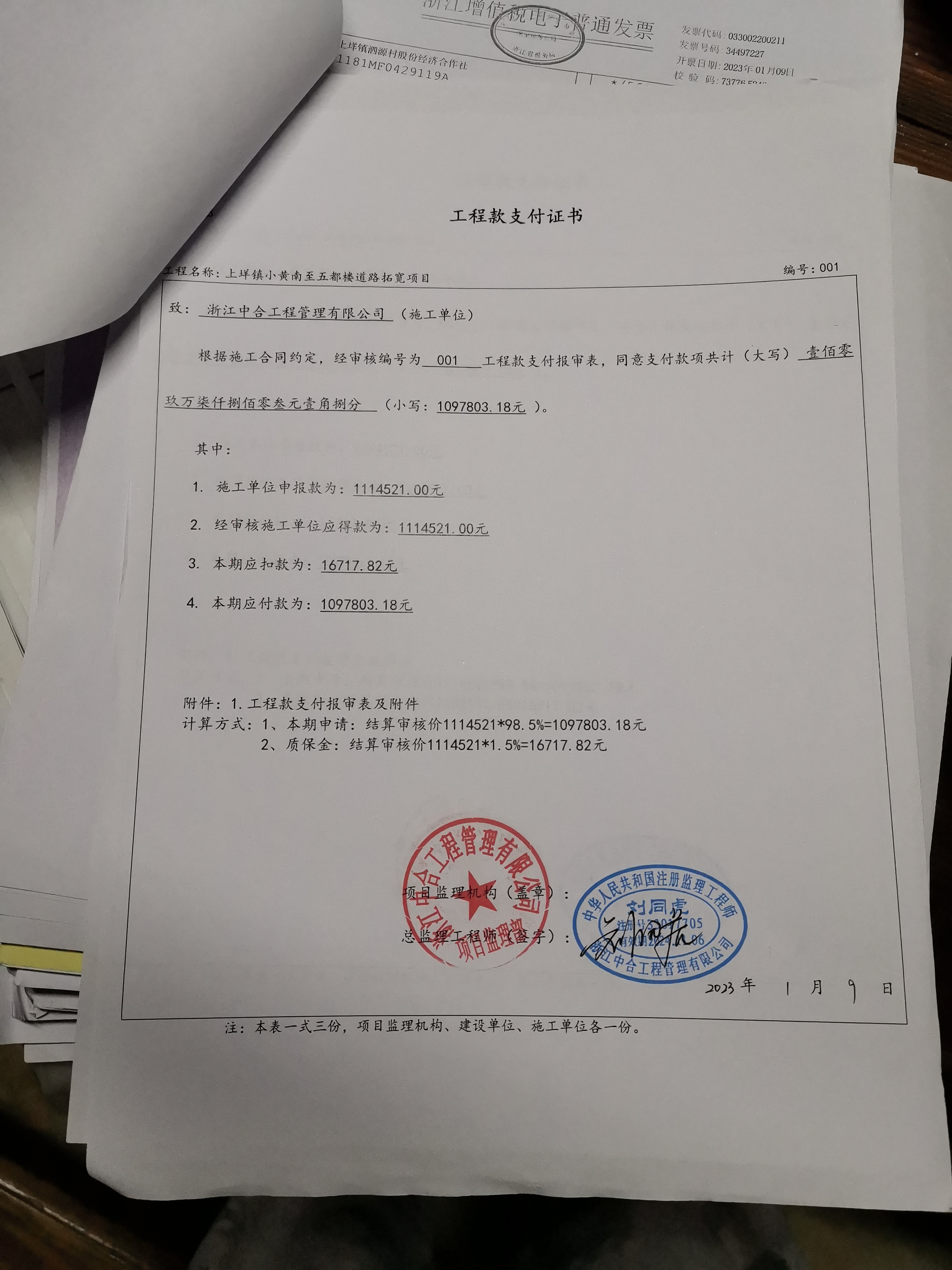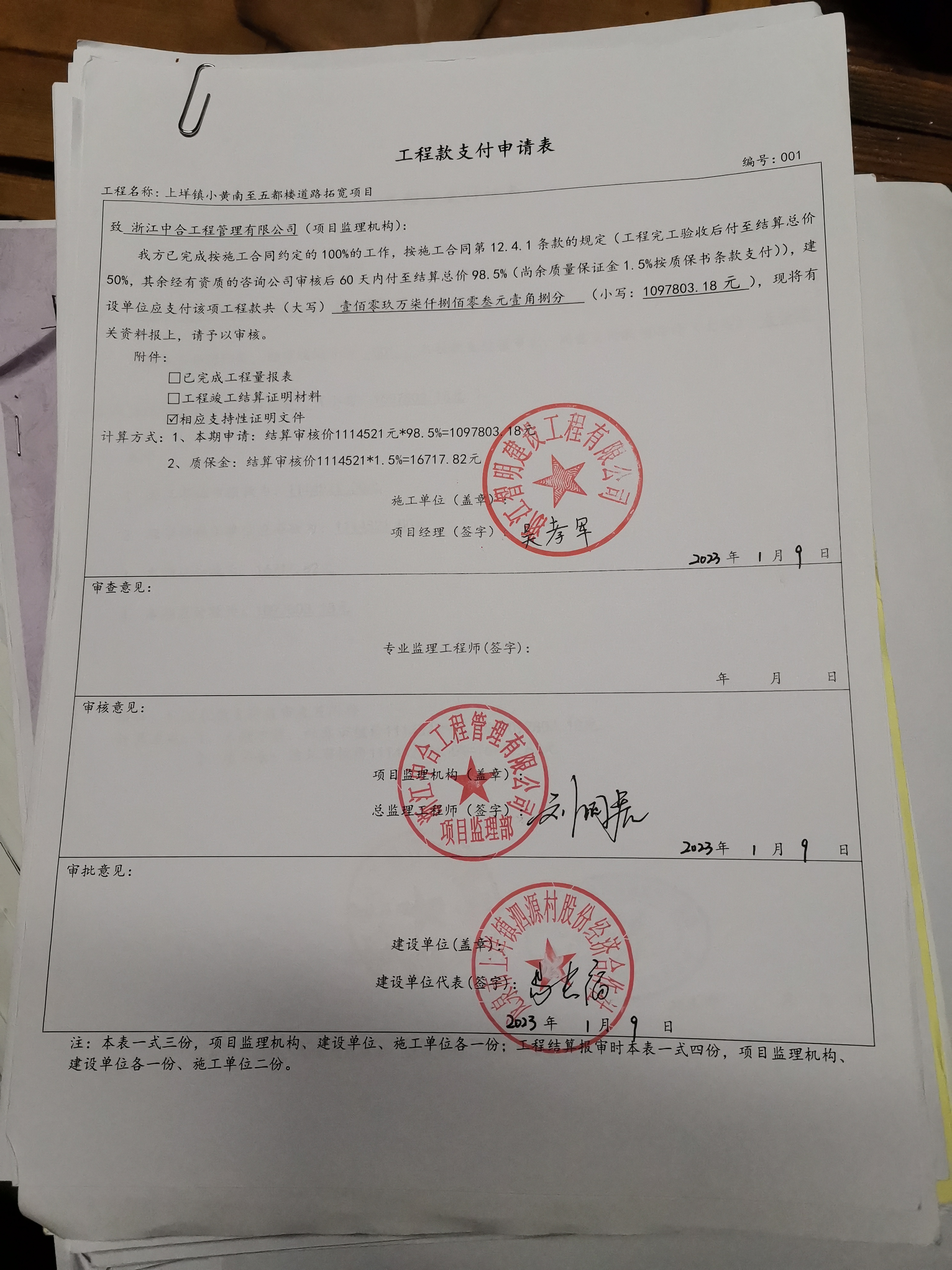 我单位施工的上垟镇小黄南至五都楼道路拓宽项目工程于2022年4月13日开工建设,己于2022年8月29日完成建设合同约定的施工内容,手续齐全,按合同本工程款是2022年就应该付百分之九十八点五,到今天工程款还迟迟不付,农民们叫苦连天,请求政府帮助解决。