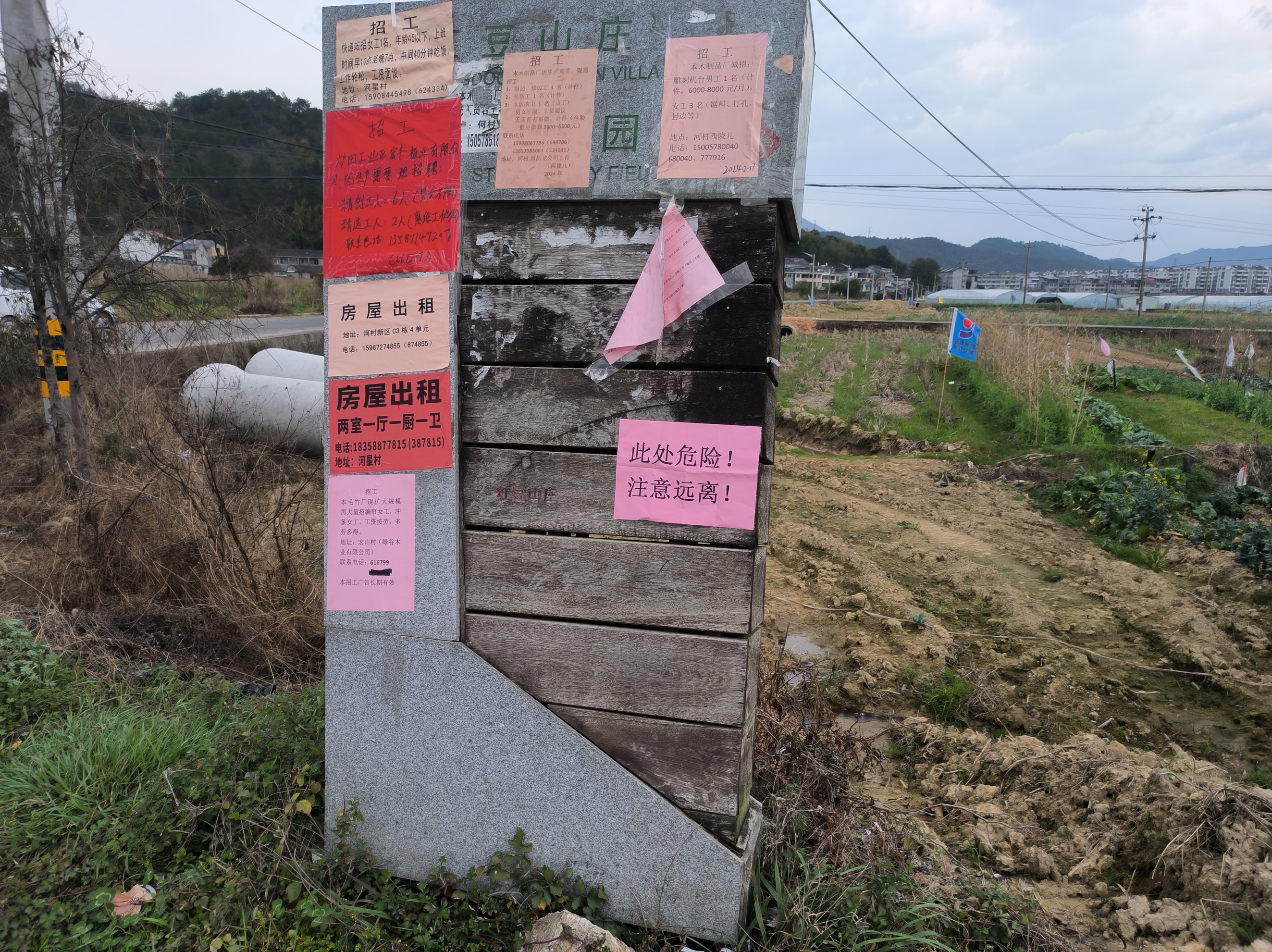 河村 五岔路口广告牌存在倾倒危险 建议拆除
