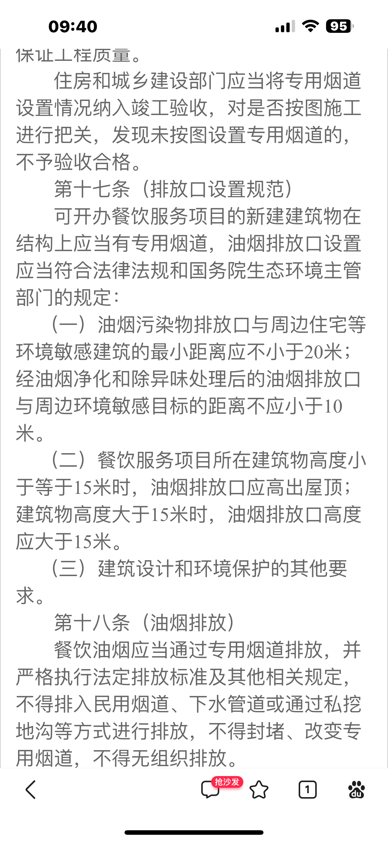 ?(一)油烟污染物排放口与周边住宅等环境敏感建筑的最小距离应不小于20米;经油烟净化和除异味处理后的油烟排放口与周边环境敏感目标的距离不应小于10米。