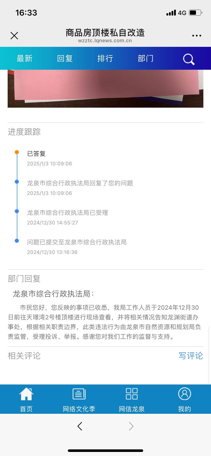 龙泉市信访局 回复
